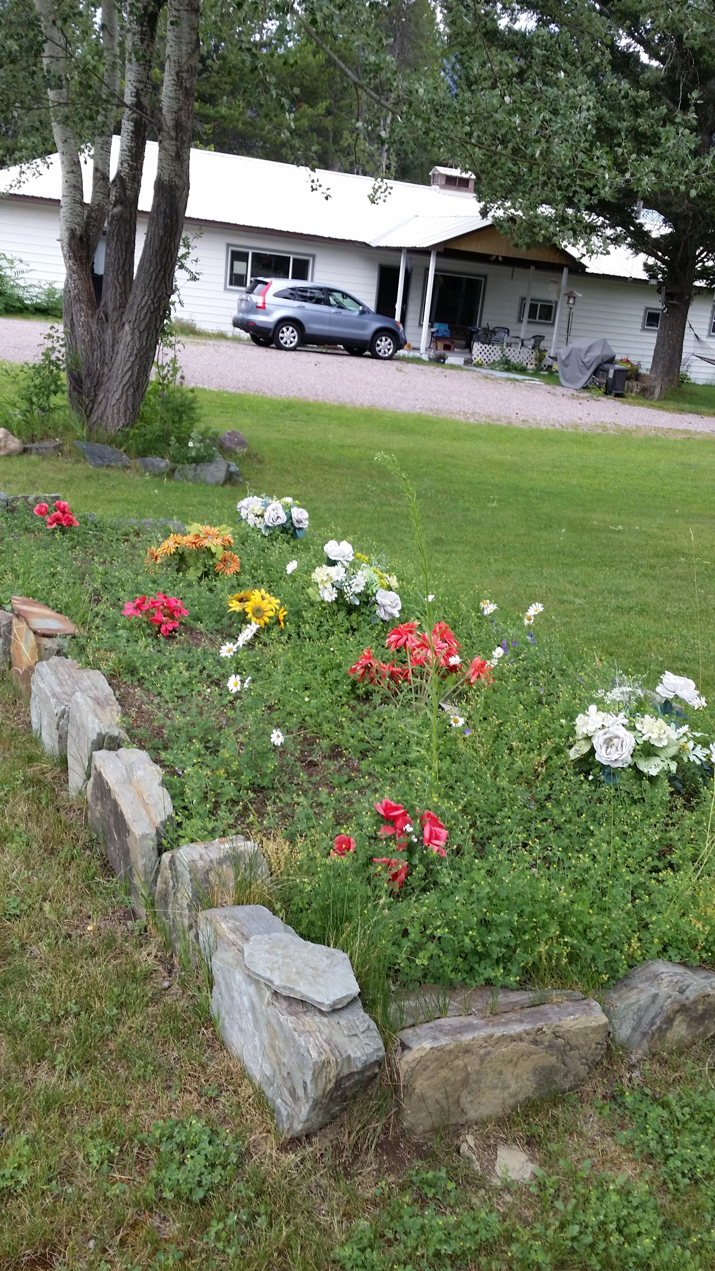 Was out a few days ago in Hungry Horse, Montana taking a walk with my wife, Sharon and passed this “flower garden.” I placed quotation marks around the term “flower garden” because this little plot of “flowers” is a prime illustration of another term…. “Hypocrisy”!