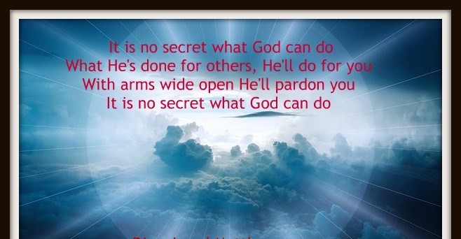 Listen, God can do it for you! He’ll forgive you (regardless of your past – regardless of what you’ve done!), He’ll restore you and transform your life, He’ll make you His very own and use you for His honor and glory! He will!!! “It is no secret what God can do! What He’s done for others, He’ll do for you!”