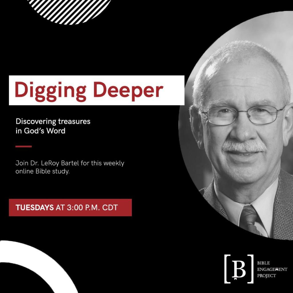 The last Digging Deeper Bible Study with Dr. LeRoy Bartel before Christmas break will be this Tuesday, December 15, 3 p.m. CST!! Don’t miss it (but if you happen to – no problem, they’re taped! It’s a Zoom Webinar) The passage we’ll be studying is Exodus 20 – “The 10 Commandments” Here’s the link to sign up and be a part of the study: https://l.facebook.com/l.php?u=https%3A%2F%2Fbibleengagementproject.com%2Fdiggingdeeper%3Ffbclid%3DIwAR1W9EINFg98OLX0-oyU45EU4K-FVs_cweTY6IcfbjKt_r8xUafe_QyLlYQ&h=AT1hM1BD4gmx3Jme7eBXFDGG8HoMUnkxXwSGxCyBWt2IjSUXwbtNuvqKYq0007gXY2ObktfJGwxs6_ldvpKh1OS9hgmcp4_KnOjiAf0CppwTumDP99mUxKCk2TK6rd5lYEi3zD3dYLYuKMSGWA&__tn__=-UK-R&c%5B0%5D=AT3zvQwGk80oGt0Yg9v58xvABB7J1AhOeGtpYUonzLLR_ft4AlXJF5rm7XAB0cs3d6pNTgD1P4eH84_c6t79AB-ylK5ZohTBO3Ji2-0PLvj2Q0itoUjumT_nSPzdiXMlcd-Z1slsUs5cdiMt2NJxjHvoGdg