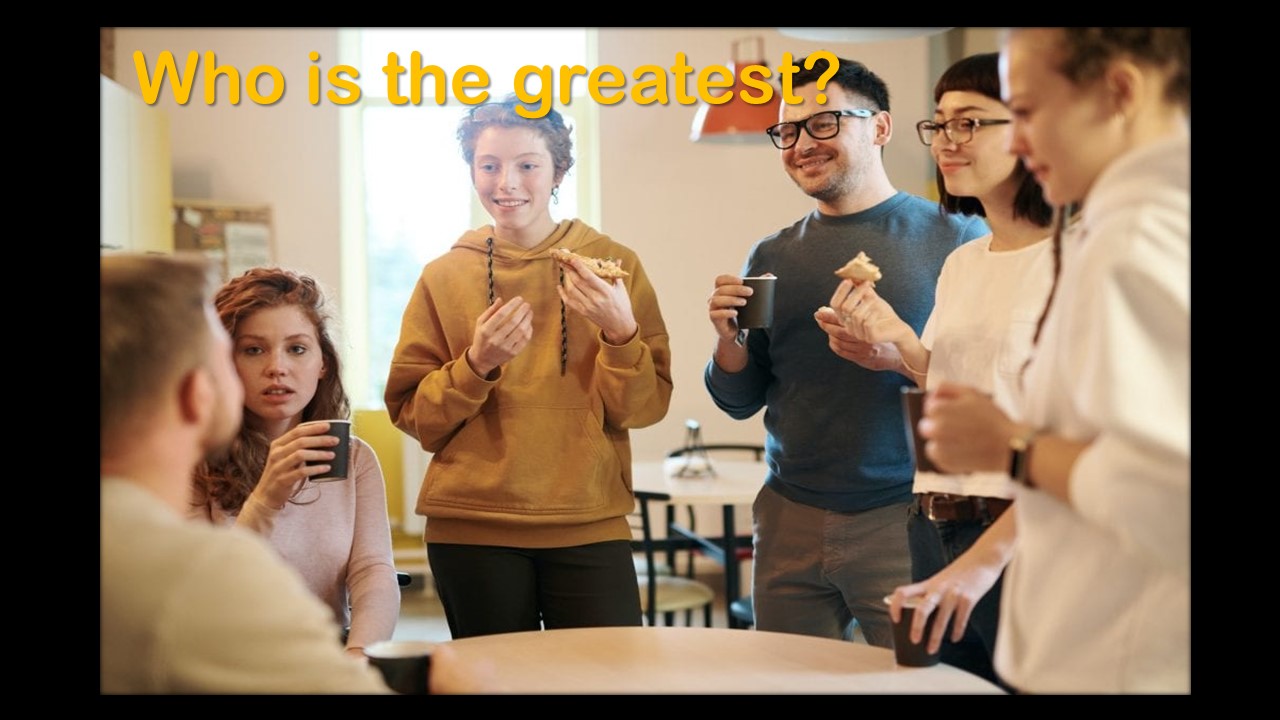 Break time discussion stuff… “Who is the greatest?” Everyone has an opinion. The evidence varies. “My guy! That gal! I’m pretty great too! What do ya think?”