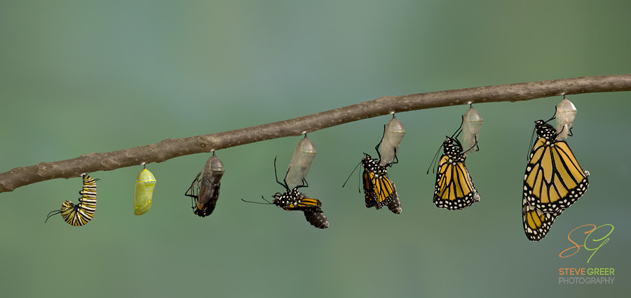 Metamorphosis … the miracle of transformation that takes place when a caterpillar goes through a process (a metamorphosis) and becomes a beautiful butterfly (see the pic).