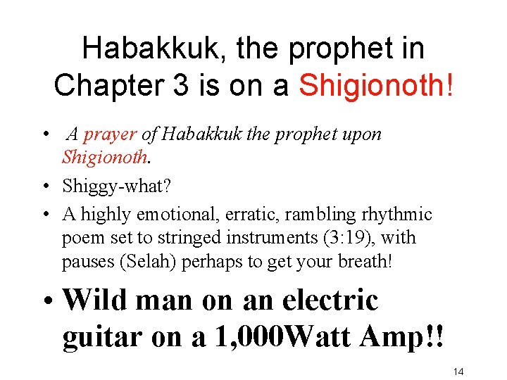 Habakkuk 3 in the Bible begins like this… “A prayer of Habakkuk the prophet, according to Shigionoth.” The meaning of that ancient word is uncertain and most believe it describes a musical style. Some have described it as wild, passionate, and loud. Some would love it (perhaps others would dislike it). If the meaning is accurate though, it fits the content of Habakkuk 3… the passionate, prayerful expression of a prophet deeply concerned about the welfare of his nation and God’s wrathful judgment upon the wicked!