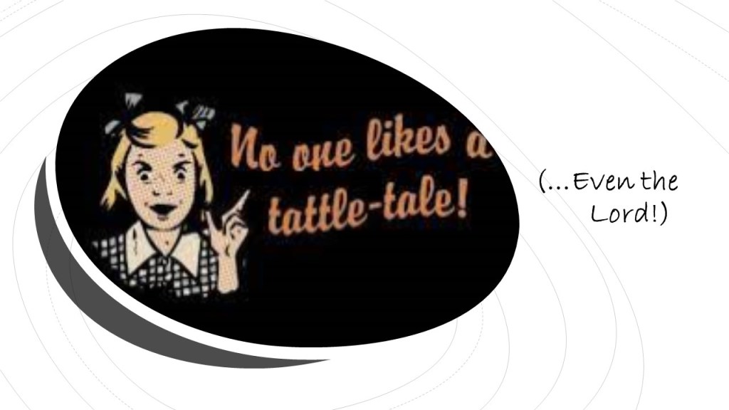 The point? Don’t be a “Spiritual tattletale!” It won’t work with the Lord!