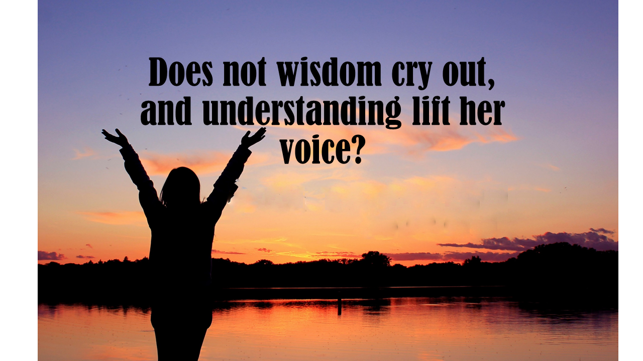 I WANT TO HEAR WISDOM’S VOICE ABOVE THE RABBLE OF ALL THE OTHER VOICES IN OUR WORLD! I want my ear tuned and attentive to her. I want to discern her sweet tone and wholesome message among all of the other competing voices! It it a invitation to truth, insight, righteousness, wholeness, blessing, and “Shalom”!) It is a call to reject deception, temptation, self-will, sin and rebellion.