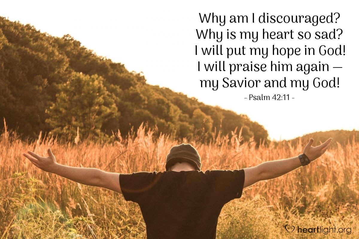Today in my Bible reading I was reminded of the repeated refrain of Psalms 42-43… The Psalmist engages in “self-talk” as he struggles with discouragement, despondency and a season of depression… He asks himself, “Why are you cast down, O my soul, and why are you in turmoil within me? – [And then as someone who trusts the Lord he answers himself from his own faith and confidence in God…] Hope in God! For I shall again praise Him, my salvation and my God!” (Psalm 42:5, 11 and 43:5 ESV)