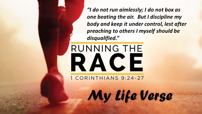 As a young man preparing for the ministry, I believe I was led by the Holy Spirit to a very important life-verse… 1 Corinthians 9:27 (I read it again today during my time of “coffee with the Lord”). It has served me well over the years and has assumed a pivotal role in my life. In fact, after I realized the importance of staying in shape and working out daily in order to function at a maximum personal level, the surrounding verses near my life-verse became even more special to me. This is not to say, I’ve never had a failure or stumbled from the principle and truth my life-verse expresses, but regardless of those failures it has continued to be a central, guiding principle in my life. It expresses my life-quest and desire in service for the Lord.